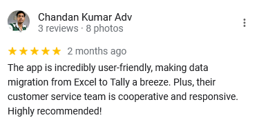 Use our pre-built .xlsx templates to convert and import data to Tally Accounting Software without technical knowledge